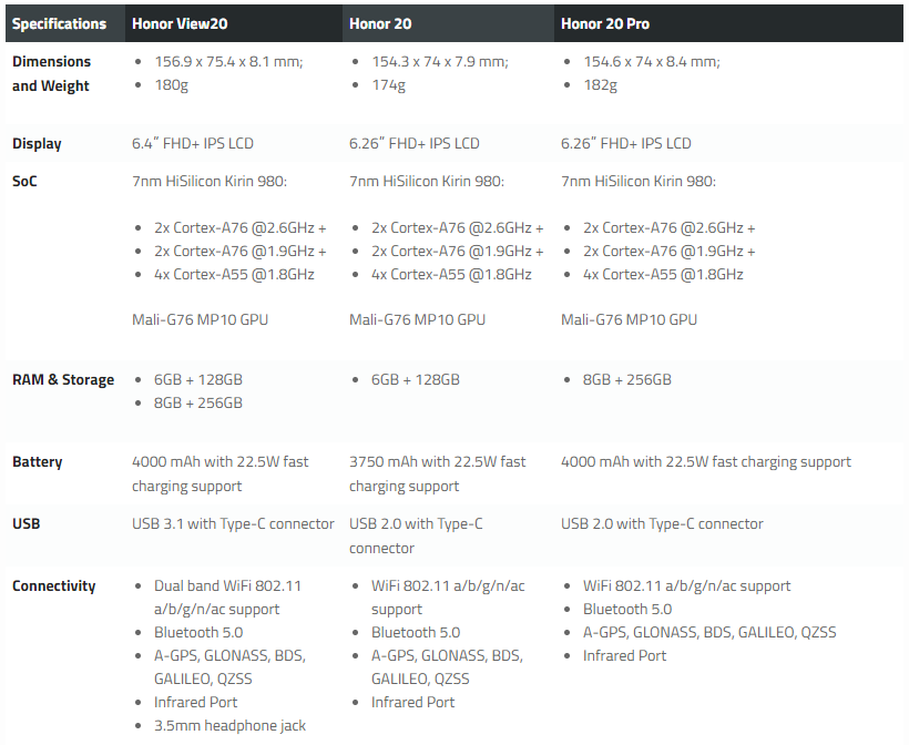 Fuente: https: //www.xda-developers.com/honor-20-pro-view20-flagship-comparison/