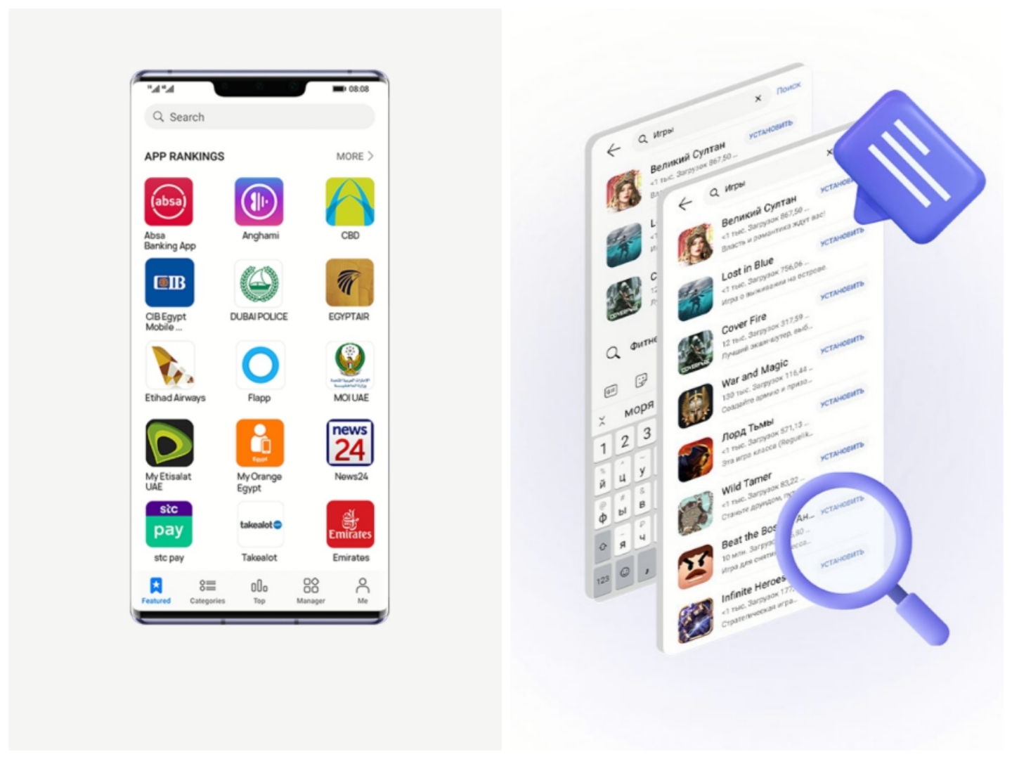 يحوي على اشهر التطبيقات باكثر من 18 فئة مختلفة من ضمنها: الأخبار، والتواصل الاجتماعي، والترفيه، والألعاب، وغيرها. كما يمكنك العثور على تطبيقات شهيرة مثل: سناب شات، وTikTok، و Deezer، وAmazon، وAmazon Prime Videos، وBooking.com و The Financial Times، وBBC News وغير ذلك الكثير. كما أنه يضم الكثير من الألعاب المحمولة الأكثر شعبية والاعلى رواجاً..