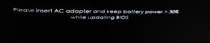 قم بتوصيل الكمبيوتر الخاص بك بمصدر طاقة التيار الكهربائي. عندما يكون مستوى البطارية أعلى من 30%، يمكنك تحديث BIOS. كما هو موضح في الشكل أدناه.