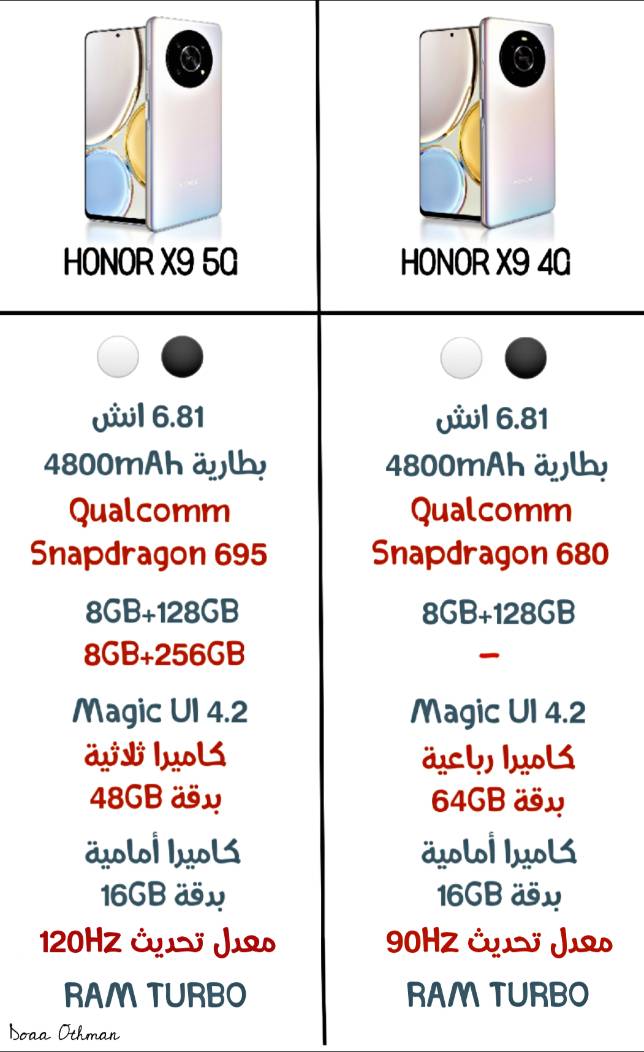 مقارنة مختصرة بين HONOR X9 4G & 5G