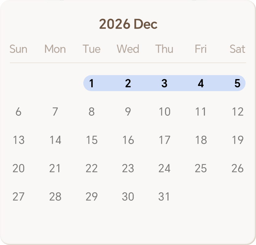 Every Month | 1st — 5th
