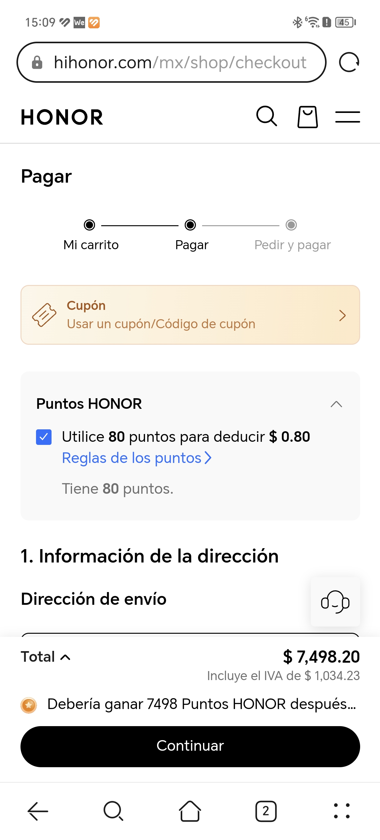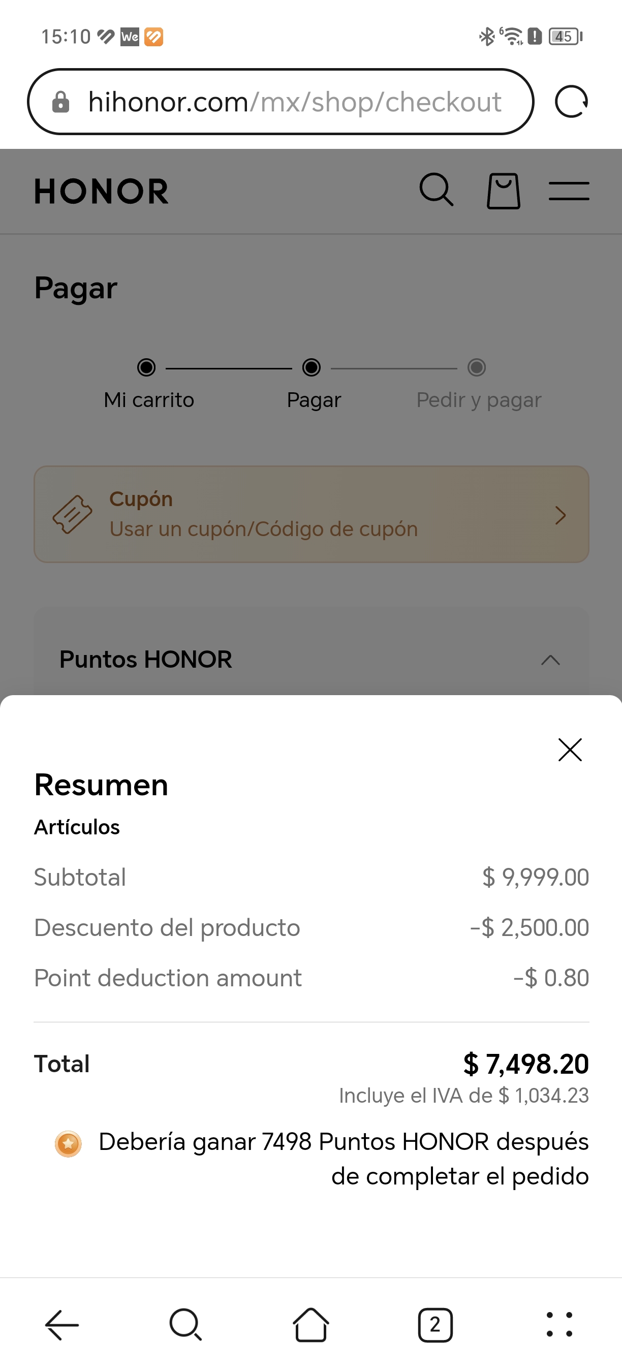 Vaya a la pantalla de pago y podrá revisar el importe de la deducción de HONOR Points.