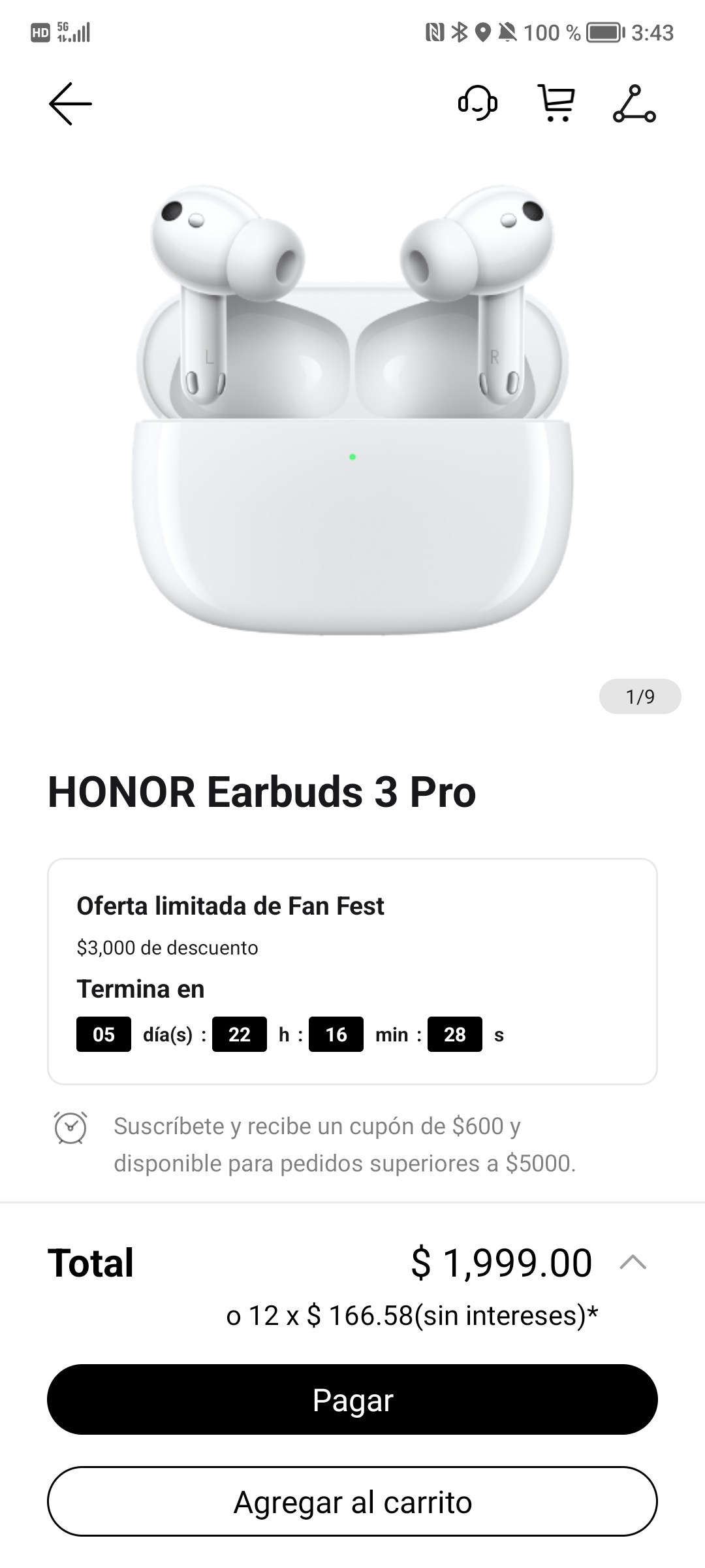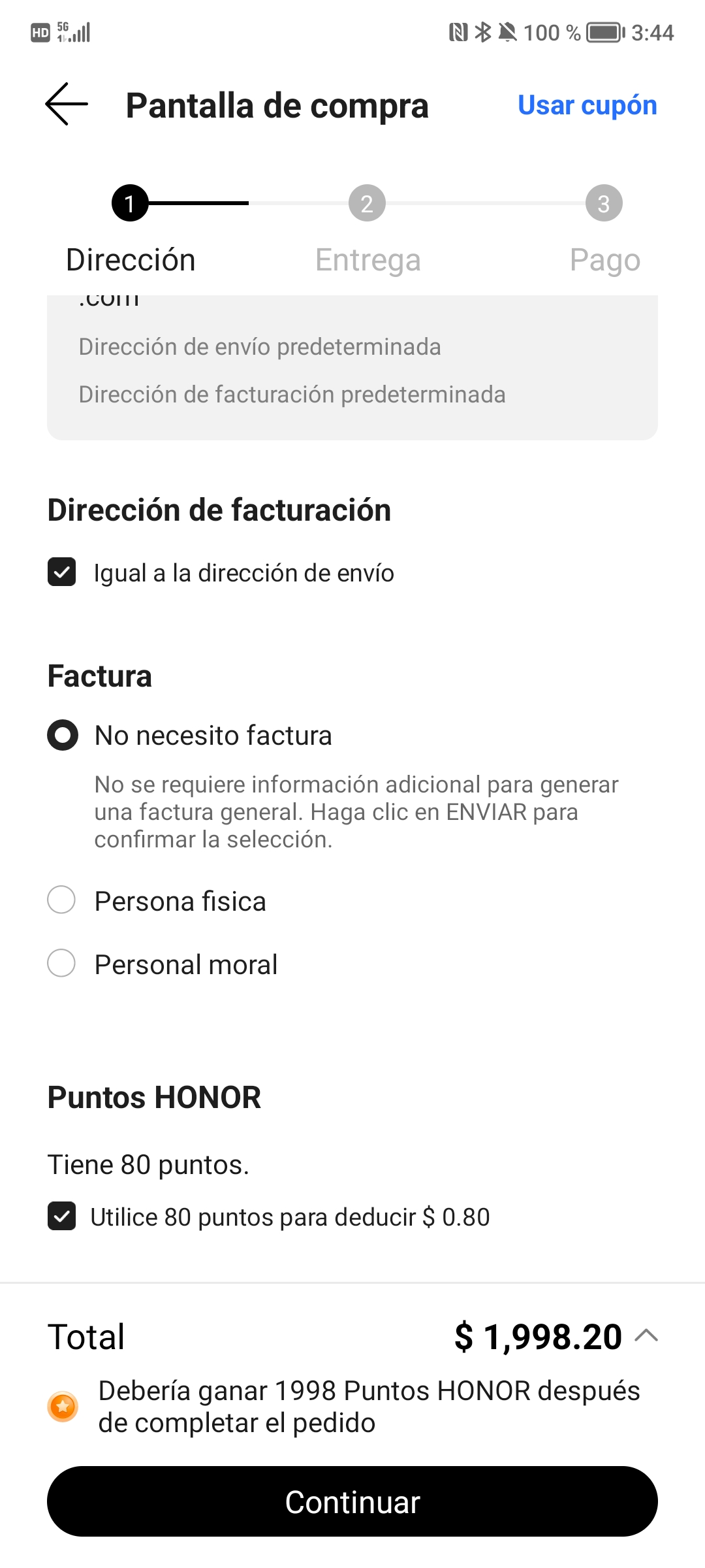 Por compras realizadas a través de cupones o HONOR Points, no recibirás puntos correspondientes al 100% del valor total del pedido. Por ejemplo, si gastas un cupón de MXN10 / 1000 HONOR Points en un pedido total de MXN 200, recibirás HONOR Points basados en un monto de MXN 150, es decir, 150 HONOR Points.