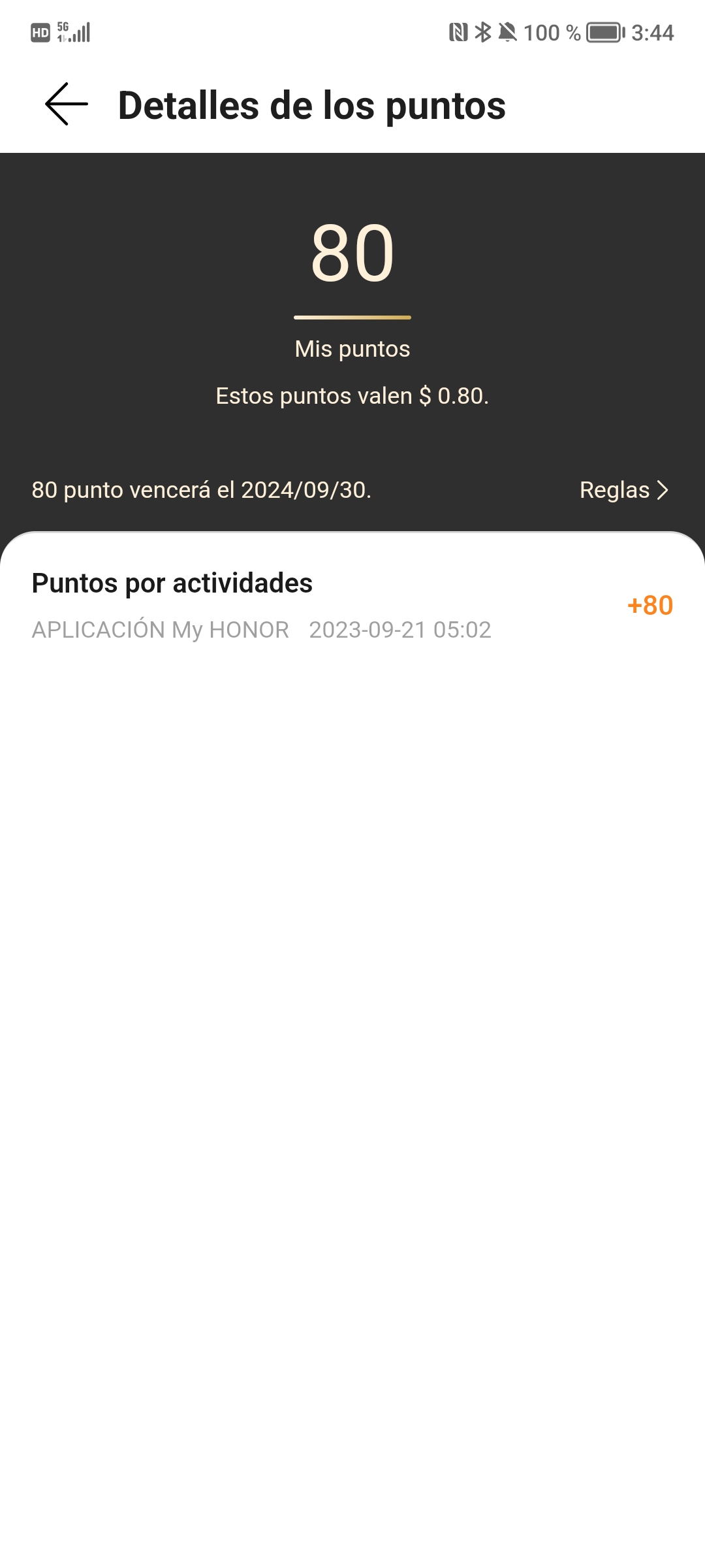 Los puntos que obtenga al comprar productos y participar en actividades (excepto al registrarse e iniciar sesión) caducarán al final del año en curso si no se utilizan. Una vez caducados, no se pueden canjear. Los HONOR Points recibidos al registrarse e iniciar sesión son válidos durante 365 días a partir de la fecha de recolección.