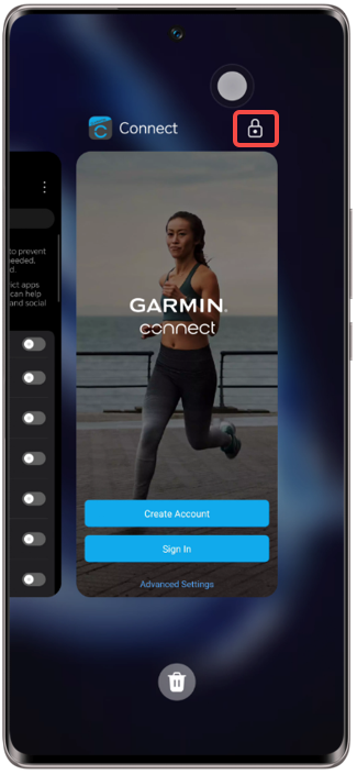 - Acceda a la pantalla de tareas recientes y presione el ícono del candado para bloquear la aplicación Connect.