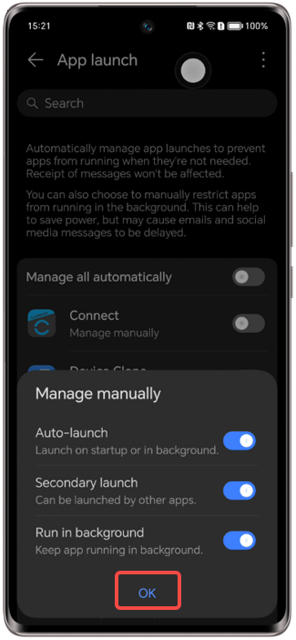 - Abra Ajustes, busque Iniciar o Inicio de aplicaciones, presione Iniciar o Inicio de aplicaciones, presione Connect, y habilite Inicio automático, Inicio secundario y Ejecutar en segundo plano.