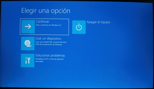 Mantenga presionada la tecla F10 durante el inicio para mostrar la pantalla de recuperación de fábrica.