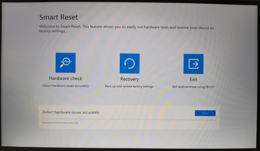 Mantenga presionada la tecla F10 durante el inicio para mostrar la pantalla de recuperación de fábrica.