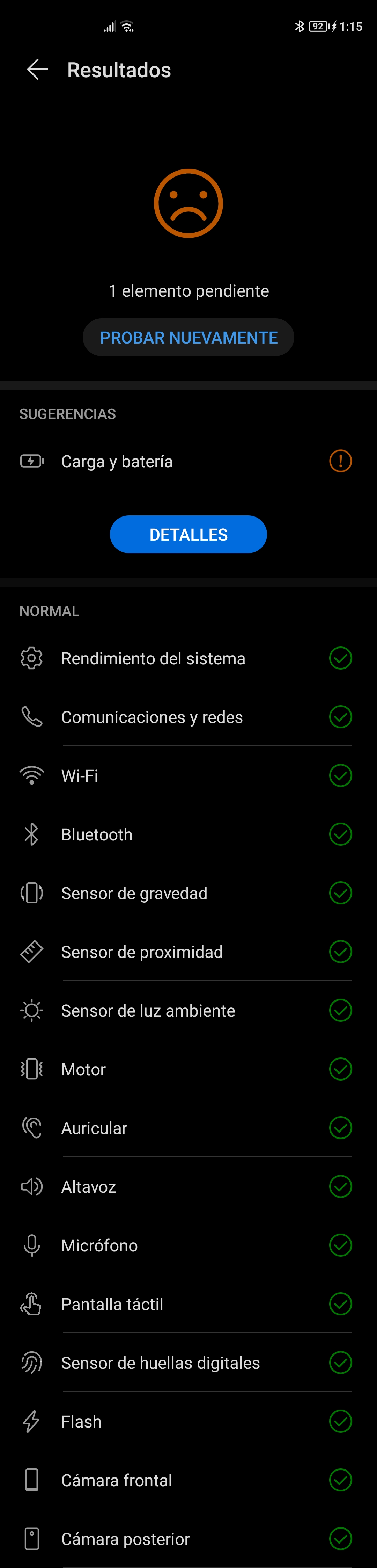 En caso de que se haya detectado alguna anomalía, el equipo hará algunas recomendaciones para tratar de solucionarlo. Si la falla persiste, se debe contactar a la línea de Soporte HONOR para recibir asistencia adicional.