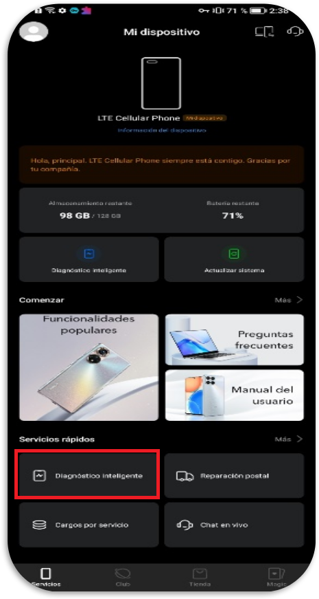 Guía para el uso de Diagnóstico Inteligente en My HONOR.
