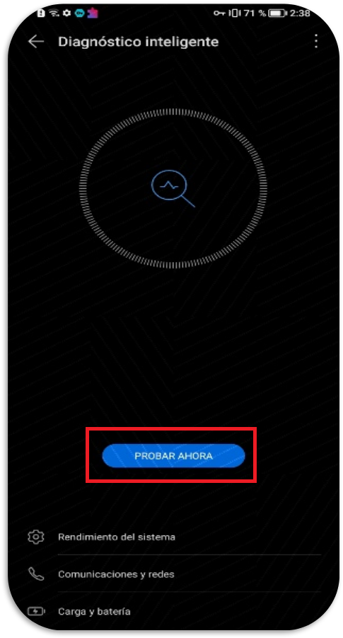 Ingresar a la aplicación de My HONOR > Servicios > Diagnóstico Inteligente > Probar Ahora. El equipo hará una serie de pruebas para identificar algún tipo de anomalía, siga las instrucciones en cada prueba.