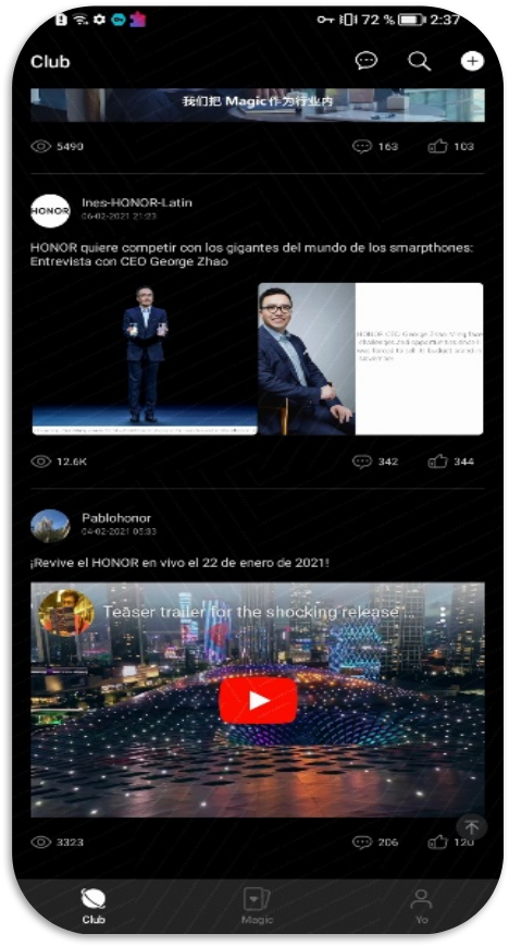 *Para otras regiones de América Latina esta opción no se visualiza. La recomendación es ingresar a la aplicación de My HONOR > Foto de perfil (esquina superior izquierda) > Ajustes > Seleccionar país o región > seleccionar Colombia o México. Al cambiar de región la interfaz de la aplicación se verá de la siguiente forma: