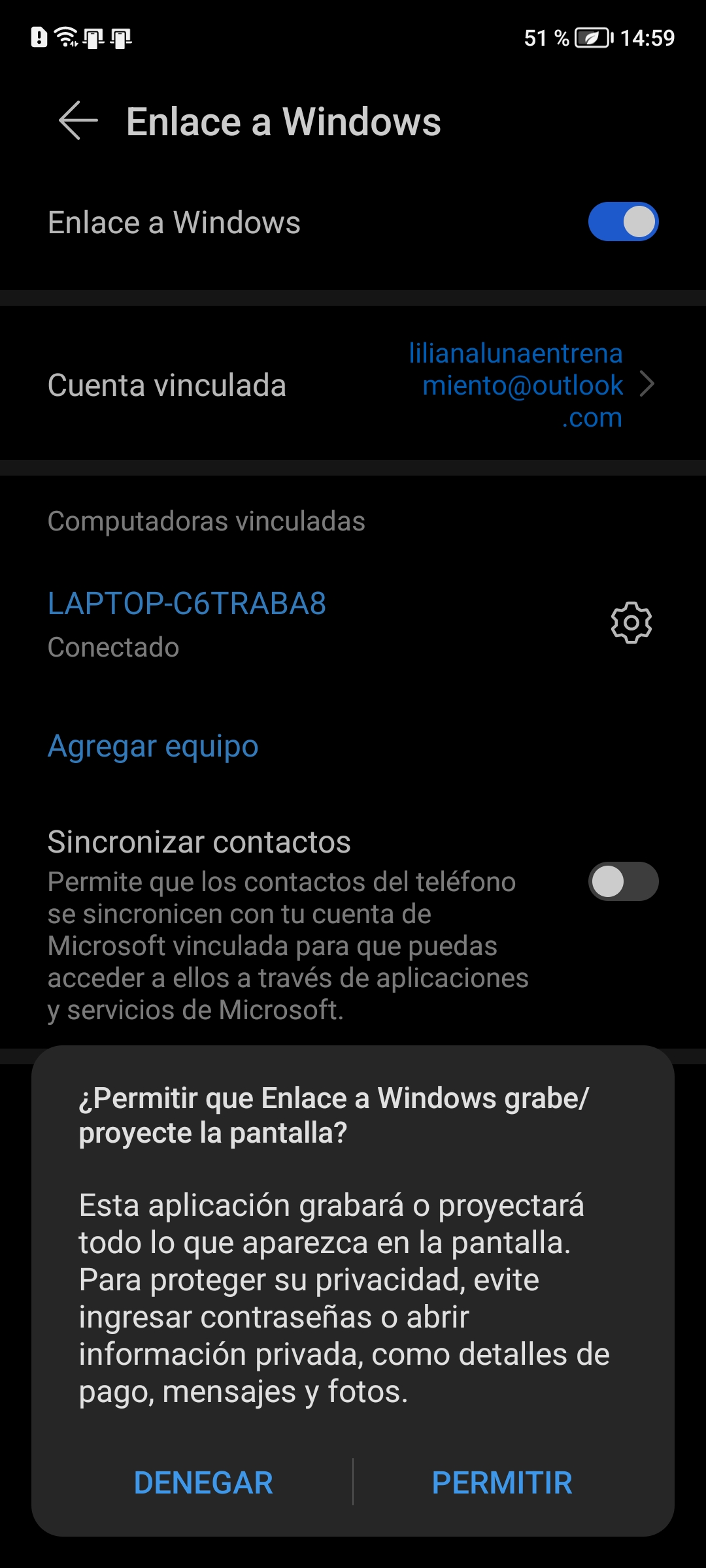 6: Finalmente podrás ver la pantalla de tu celular en la pantalla de tu PC sin necesidad de NFC.