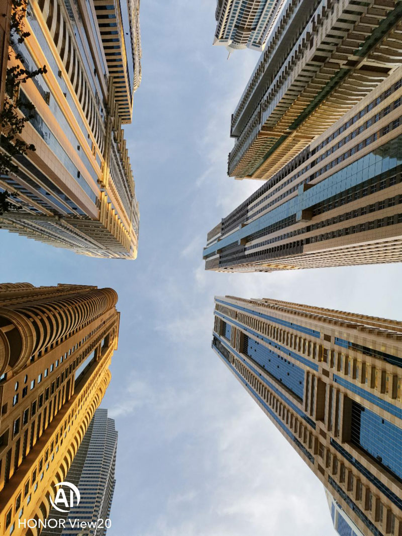 (1) The Kirin 980 uses its AI to obtain information from the gravity sensor and the gyroscope, and determine whether the user is holding the phone with their hands.So now you can capture the shining beauty of illuminated cityscapes at night with just a phone!