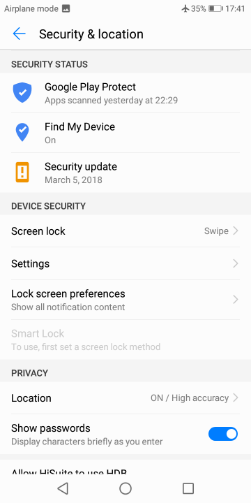 The phone runs on the EMUI 8.0 that is based on Android 8.1. If you have used any Huawei device before, you will feel right at home. There is no app tray but you can easily bring it back. Just like any Huawei phone, there are plenty of features and customization options to choose from. There are many display settings, smart features, you can choose between different navigation ways and so on.
