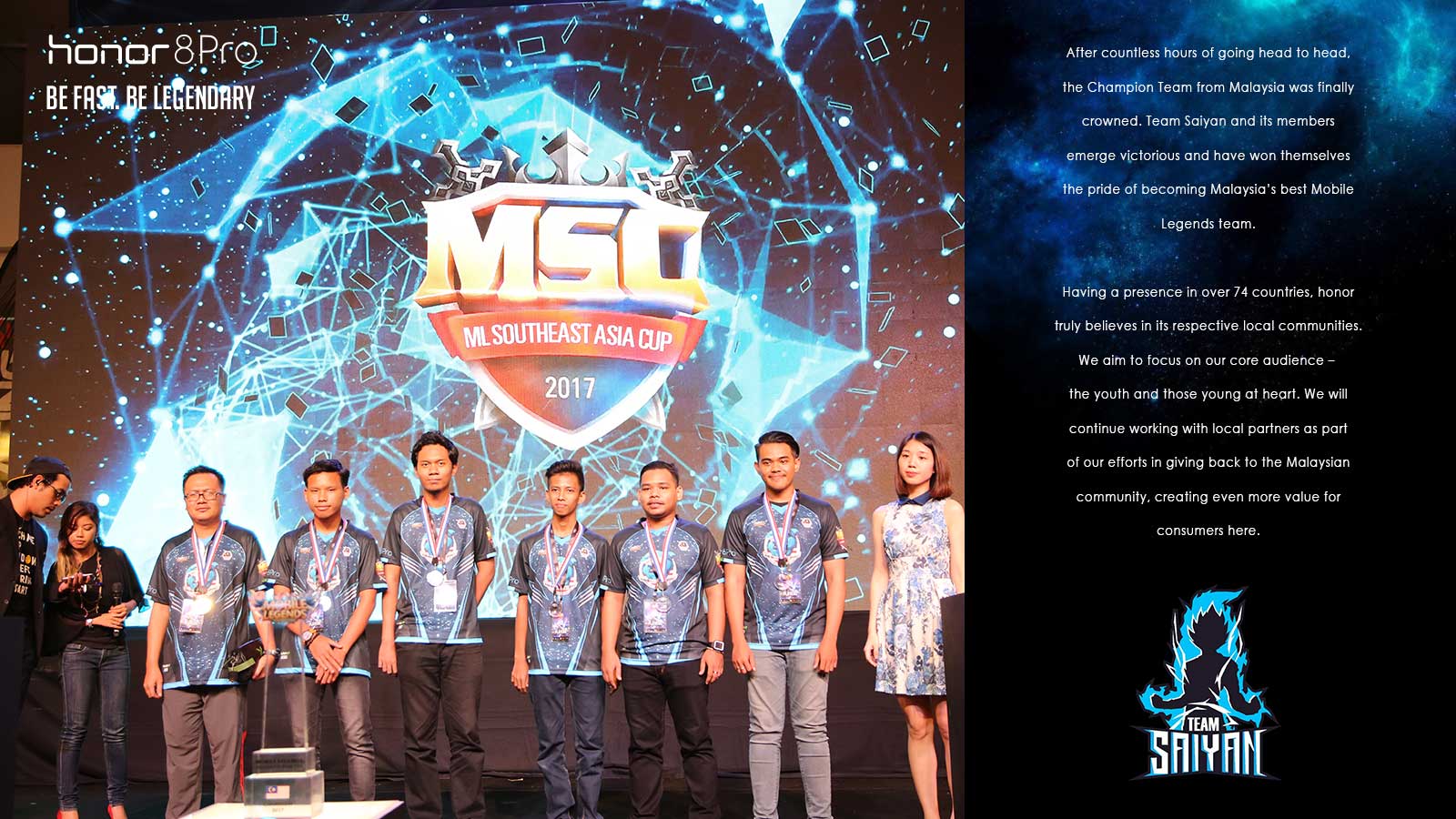 After countless hours of going head to head, the Champion Team from Malaysia was finally crowned. Team Saiyan and its members emerge victorious and have won themselves the pride of becoming Malaysia’s best Mobile Legends team. Having a presence in over 74 countries, honor truly believes in its respective local communities. We aim to focus on our core audience – the youth and those young at heart. We will continue working with local partners as part of our efforts in giving back to the Malaysian community, creating even more value for consumers here.