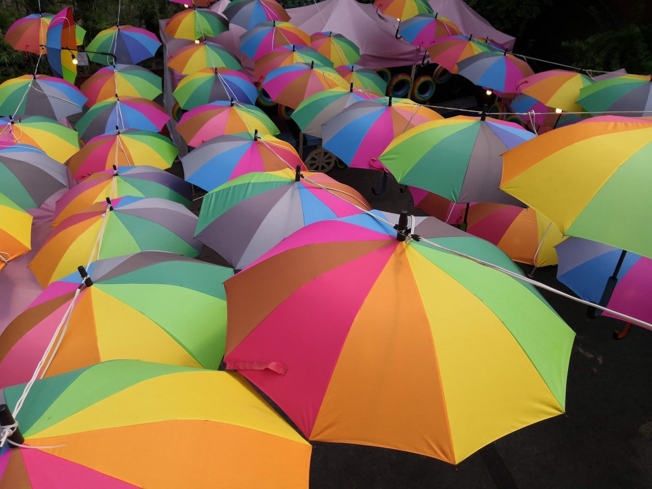 Moving on, we spotted this colorful set of umbrellas. You'll notice right away that the photo taken with AI is more vibrant. This will be a recurring theme throughout this entire article.