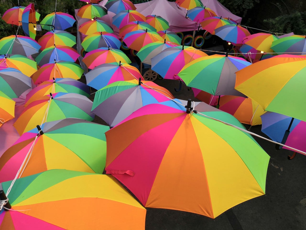 Moving on, we spotted this colorful set of umbrellas. You'll notice right away that the photo taken with AI is more vibrant. This will be a recurring theme throughout this entire article.