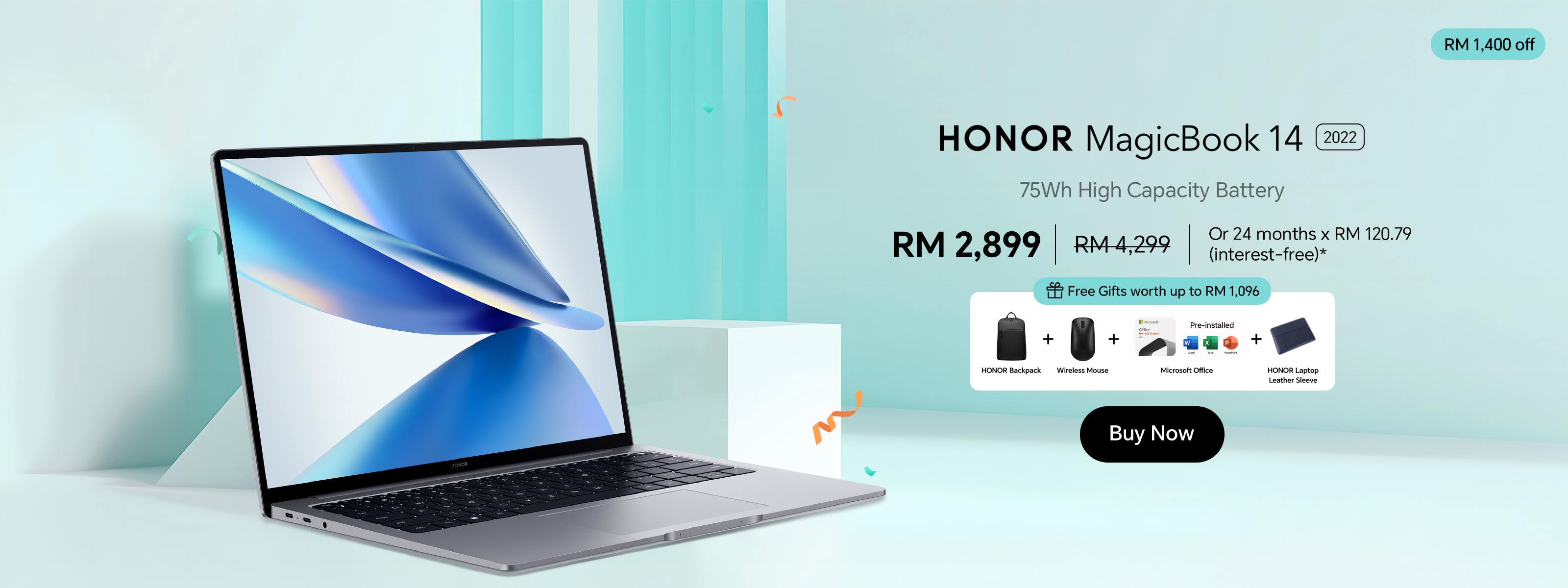 Or 12 months x RM 108.15 (interest-free)*