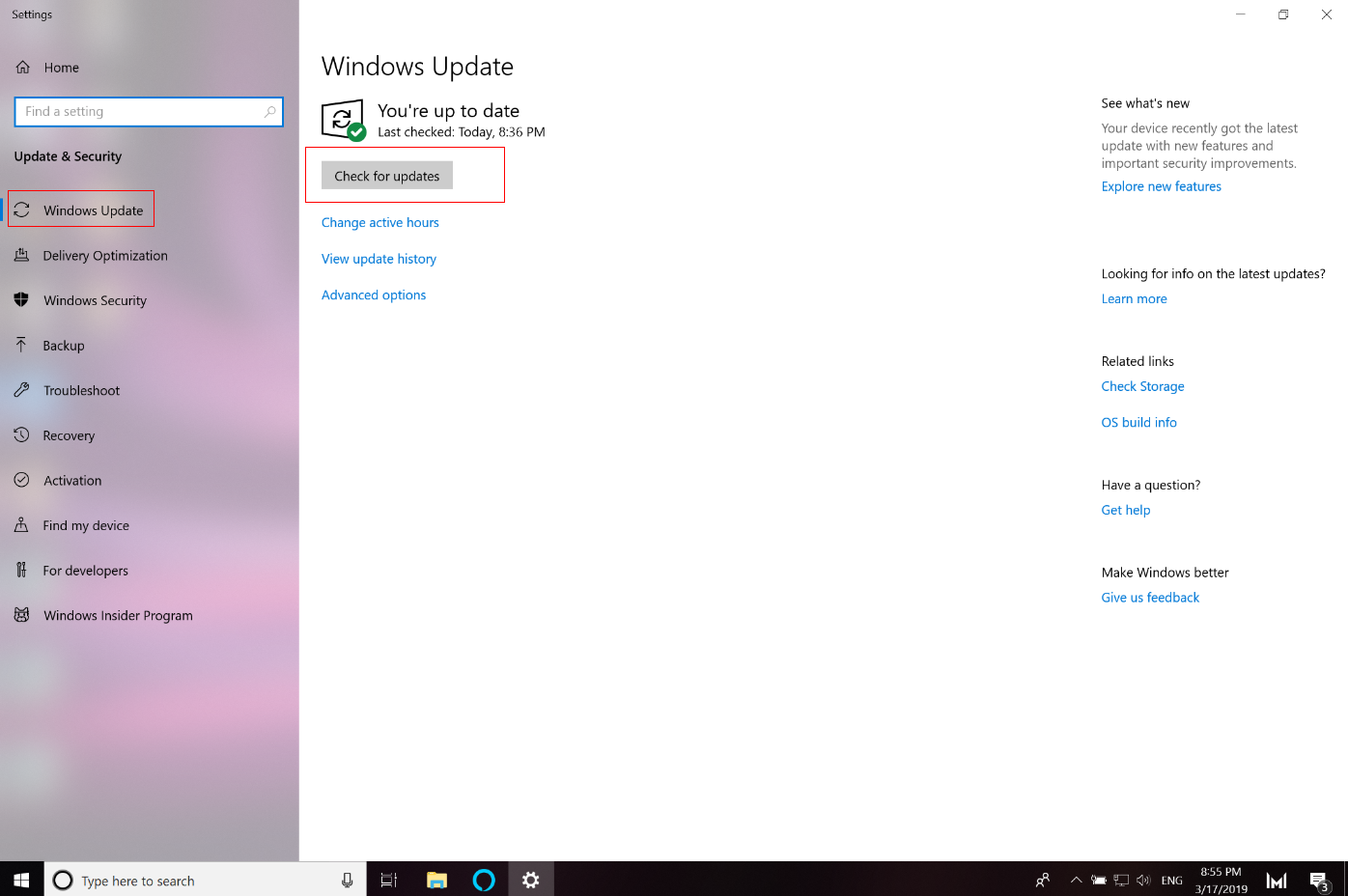 Click Check for updates. Follow the onscreen instructions to update your system.