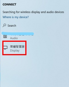 When the user wants to project the screen of the computer to another device, they cannot find the other device on the computer, or are unable to project the computer's screen to the other device.