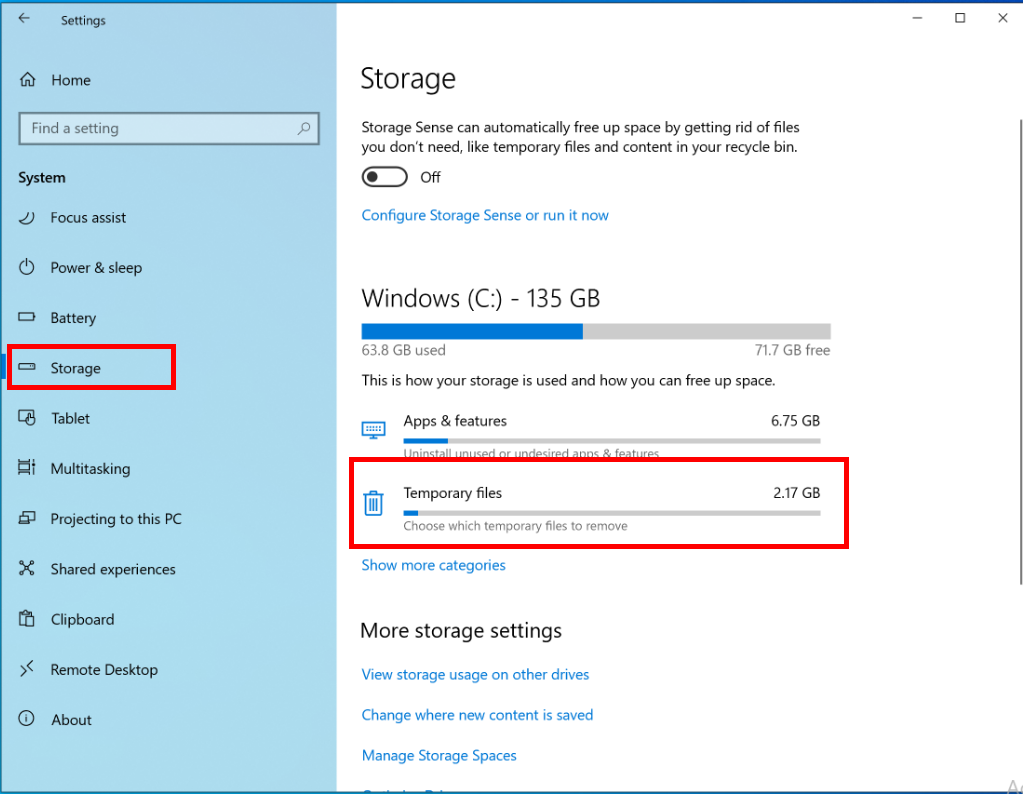 - Go to Storage > Temporary files.
