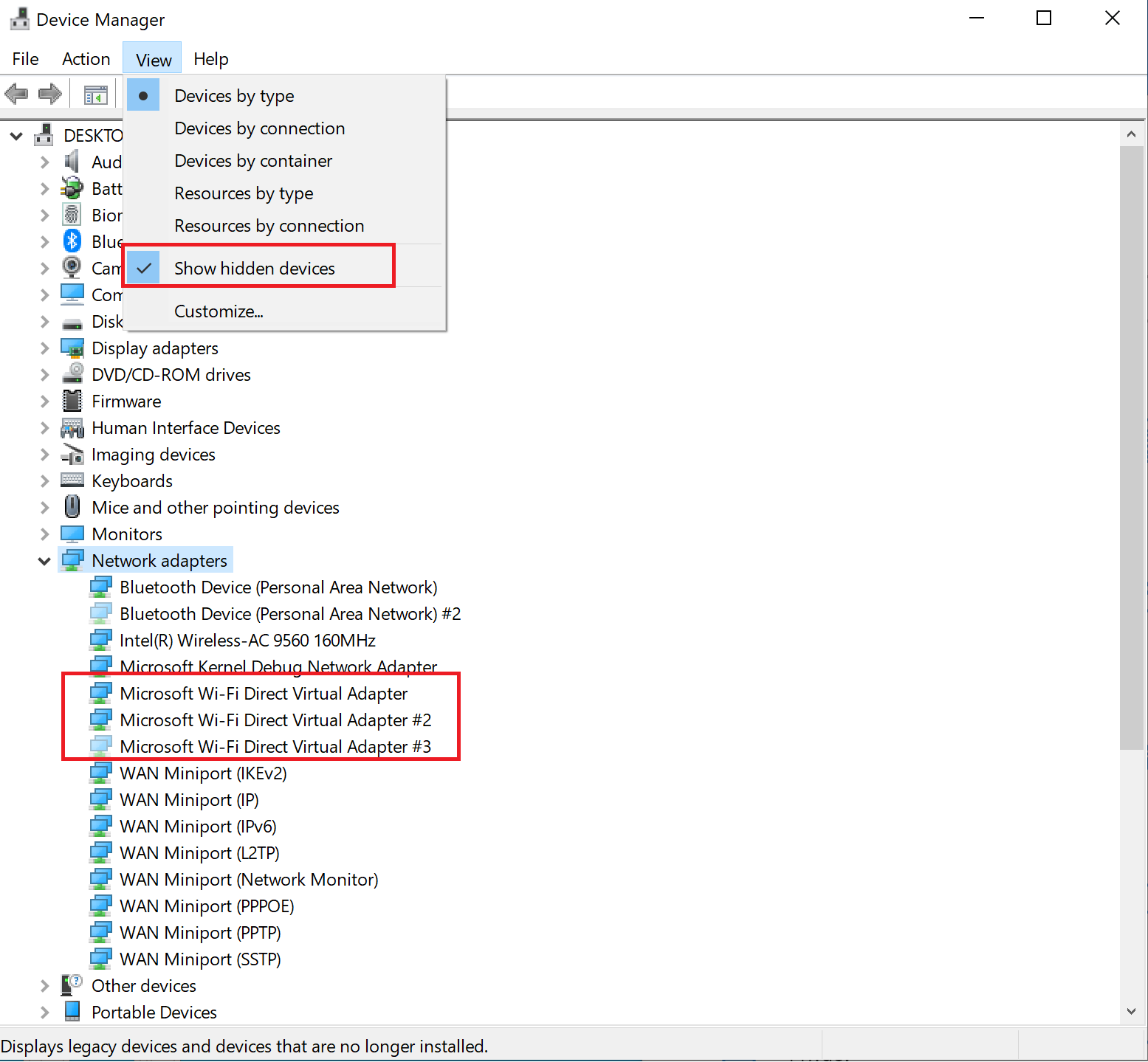 2. Check whether Microsoft Wi-Fi Direct Virtual Adapter is normal. The figure below shows the normal status. If