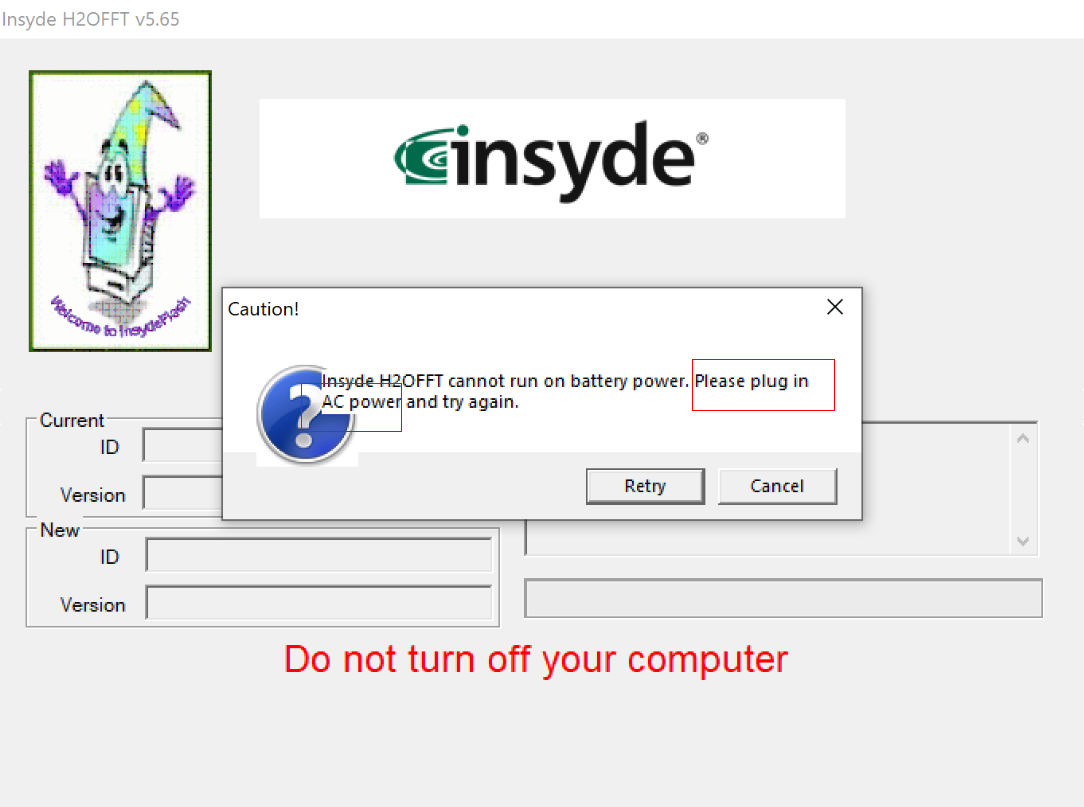 Connect your computer to an AC power source. When the battery level is higher than 30%, you can update the BIOS. As shown in the figure below.