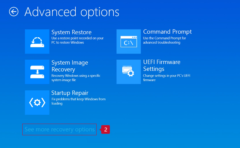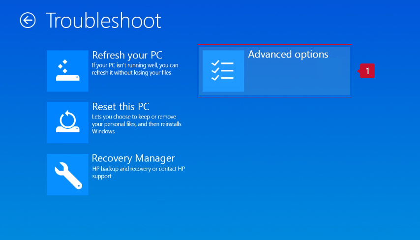 - Click Troubleshoot on the Choose an option screen.