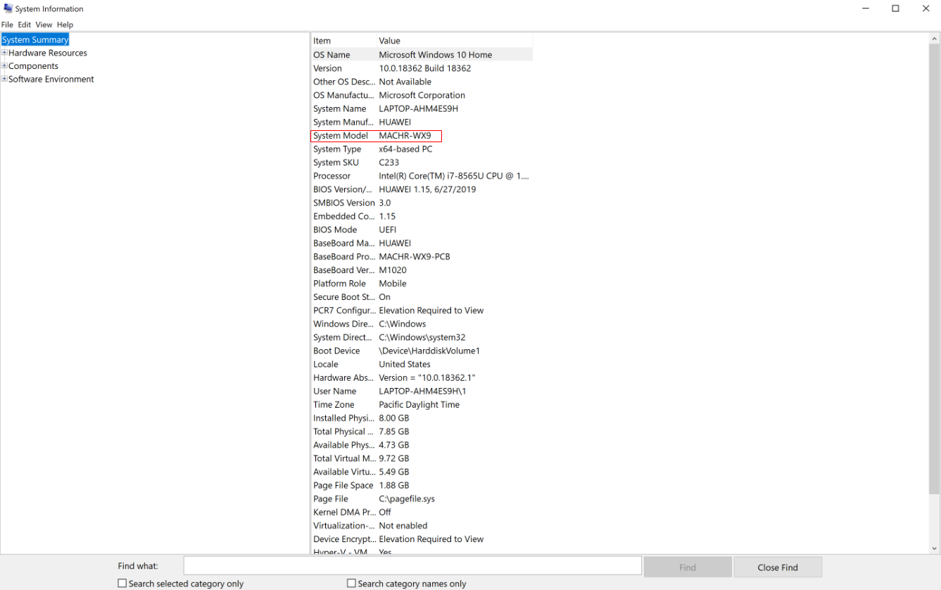 This is because the computer model displayed on the back of the computer is the sub-model number. Each computer model may have various sub-models. In this case, Honor uses X a wildcard to represent different sub-models. For example, if the computer model in the system is displayed as MACH-WX9, it indicates that the sub-model (displayed on the back of the computer) may be MACH-W19, MACH-W29, and so on.