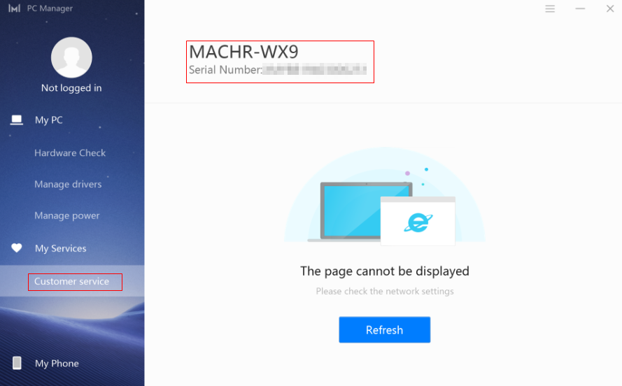Method 1: Open PC Manager, click Customer service, and then check the computer model on the right.