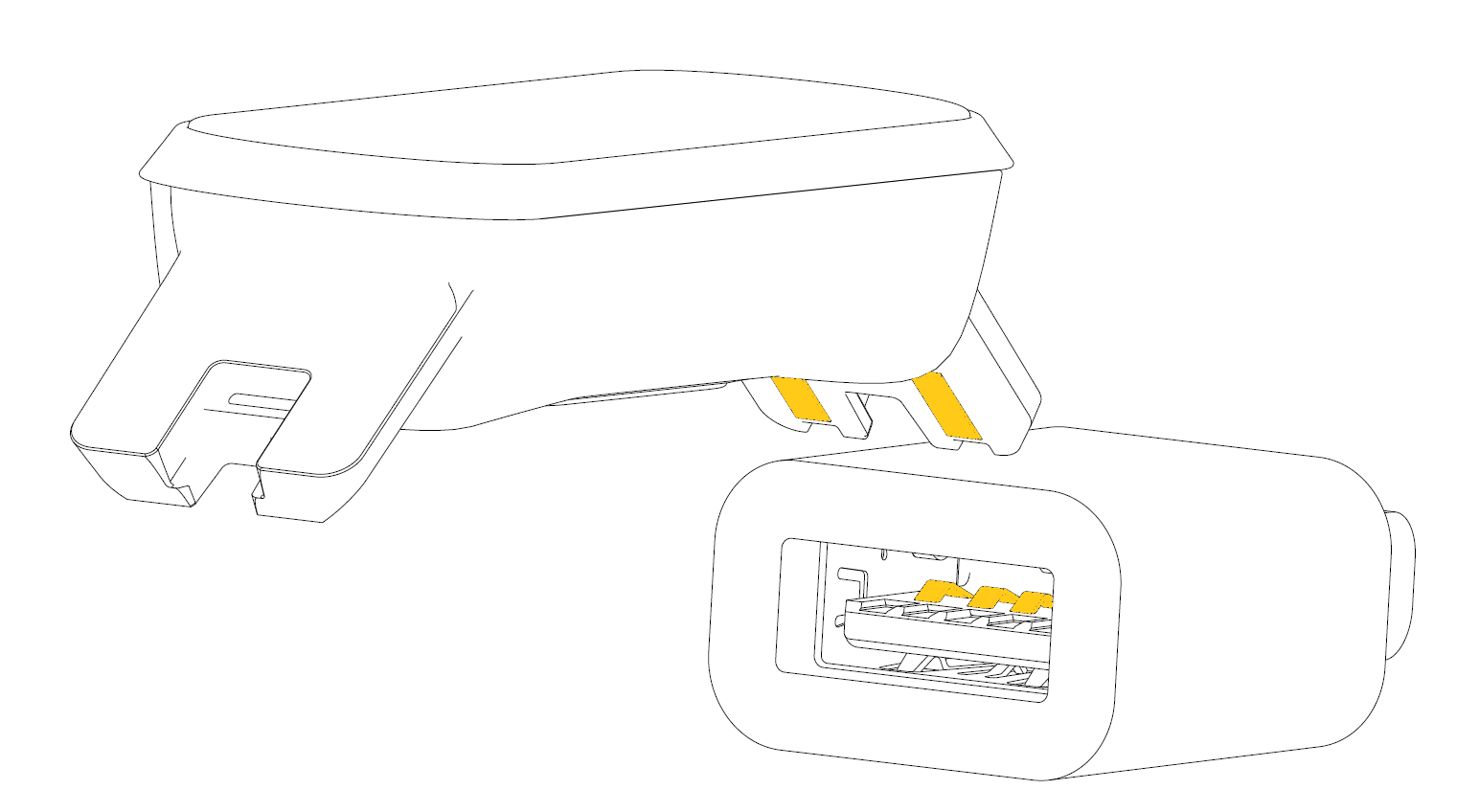 Press and hold the quick release button on the longer strap to detach the band body from the strap. Plug the band body directly into a power source with a USB port.
