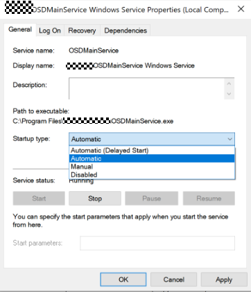Double-click OSDMainService Windows Service.