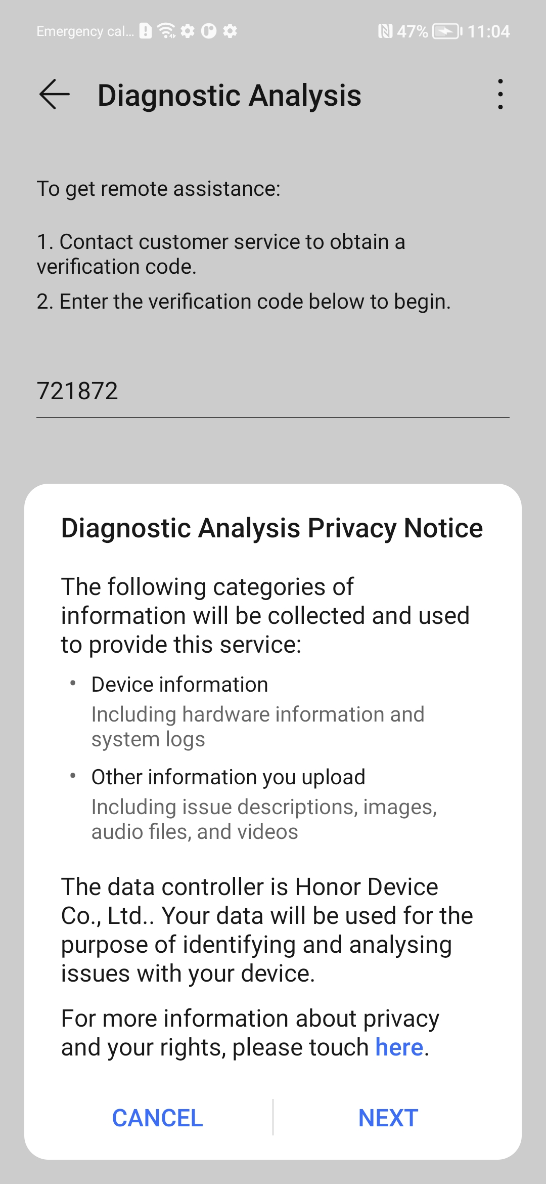 1. The remote diagnosis supports HONOR new launched Mobile phone/Tablet products since 2021, and the early launched products are not supported currently.