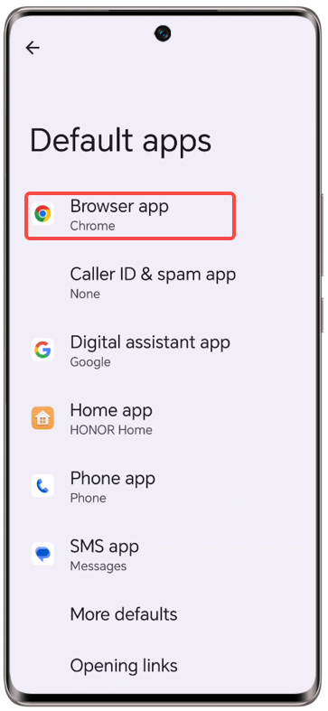 - Vaya a Ajustes, busque e introduzca Aplicaciones, luego seleccione el navegador predeterminado especificado en el último paso y toque Habilitar. A continuación, pulse directamente en el enlace de Mensajes o cópielo y péguelo en el navegador para abrirlo.