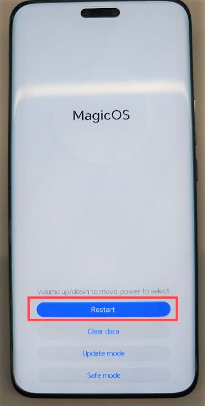 Con el dispositivo apagado, presionar simultáneamente el botón de encendido y subir volumen al menos por 10 segundos hasta acceder el modo recovery.