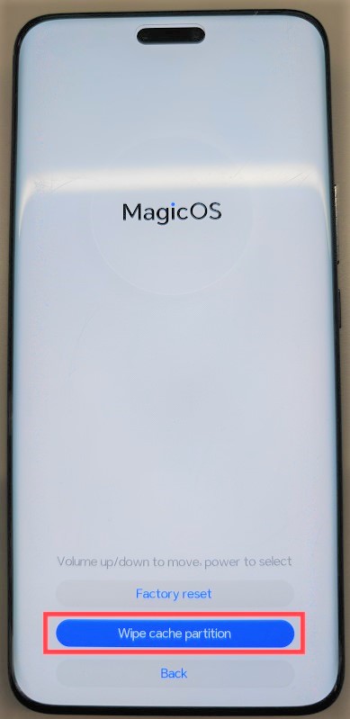Seleccionar la opción Clear data y después Wipe cache partitionpara borrar la memoria caché, al finalizar se debe seleccionarBack para retroceder al menú principal y por último presionar enRestart para reiniciar el teléfono.
