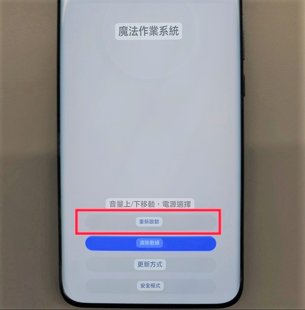 Con el dispositivo apagado, presionar simultáneamente el botón de encendido y subir volumen al menos por 10 segundos hasta acceder el modo recovery.