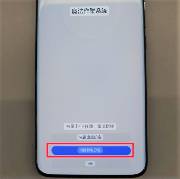 Con el dispositivo apagado, presionar simultáneamente el botón de encendido y subir volumen al menos por 10 segundos hasta acceder el modo recovery.