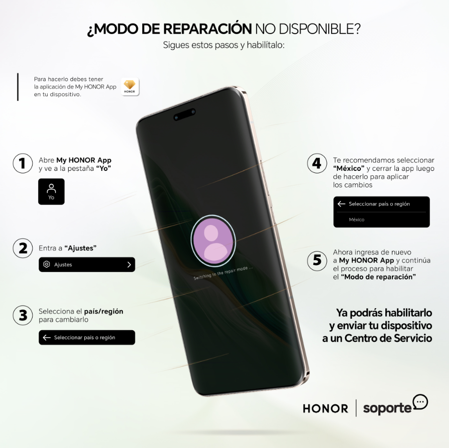 5. Ahora ingresa de nuevo a "My HONOR App" y continúa el proceso para habilitar el "Modo de reparación".