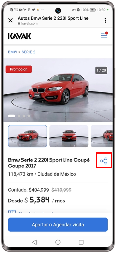 Cuando se abre un enlace en Instagram, al tocar el icono de compartir en esa página no realiza alguna acción.