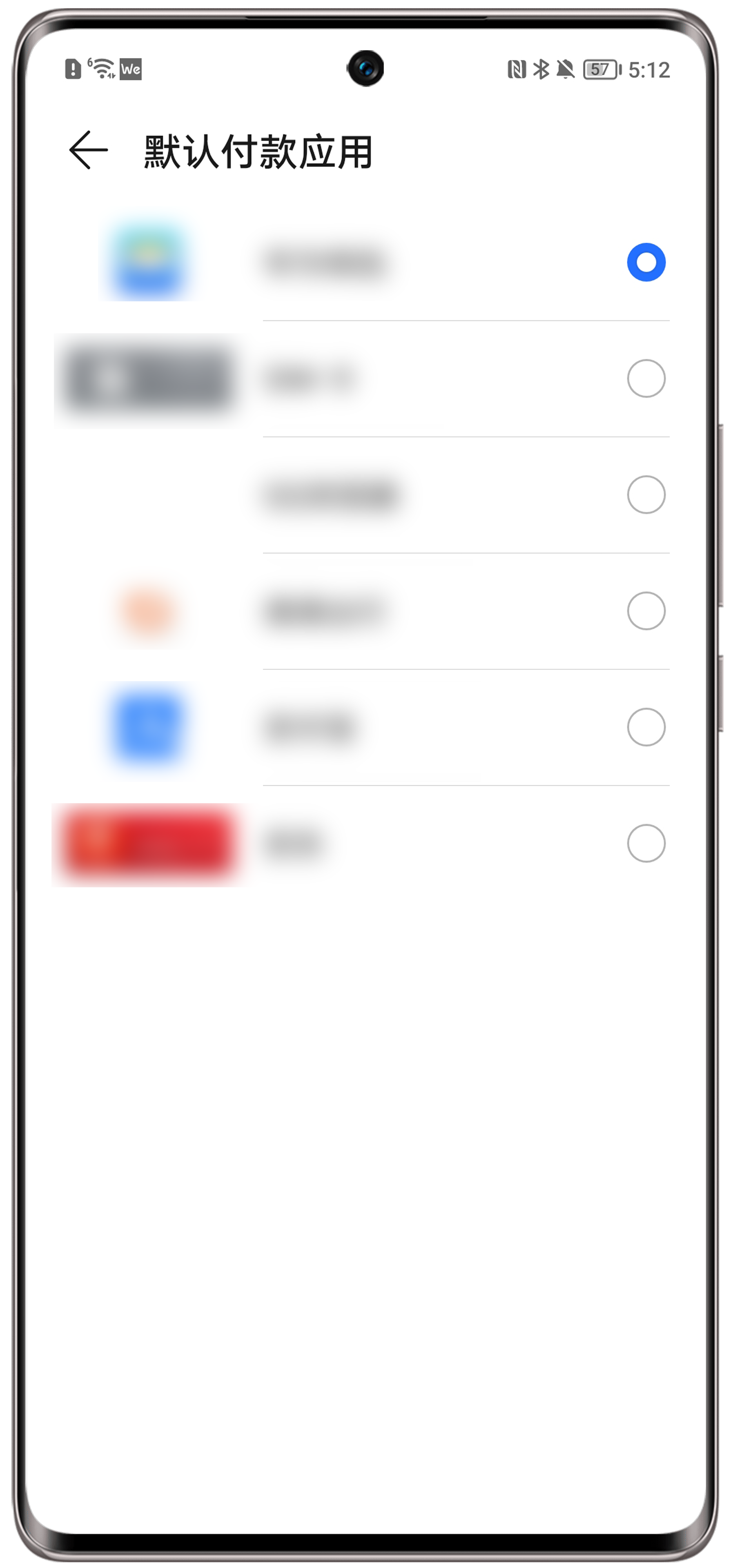 Aplicațiile de plată implicite asociate funcției NFC sunt clasificate în trei tipuri: Wallet,card SIMși aplicații terțe. Aplicațiile de plată diferite implicite implică servicii de aplicație diferite.