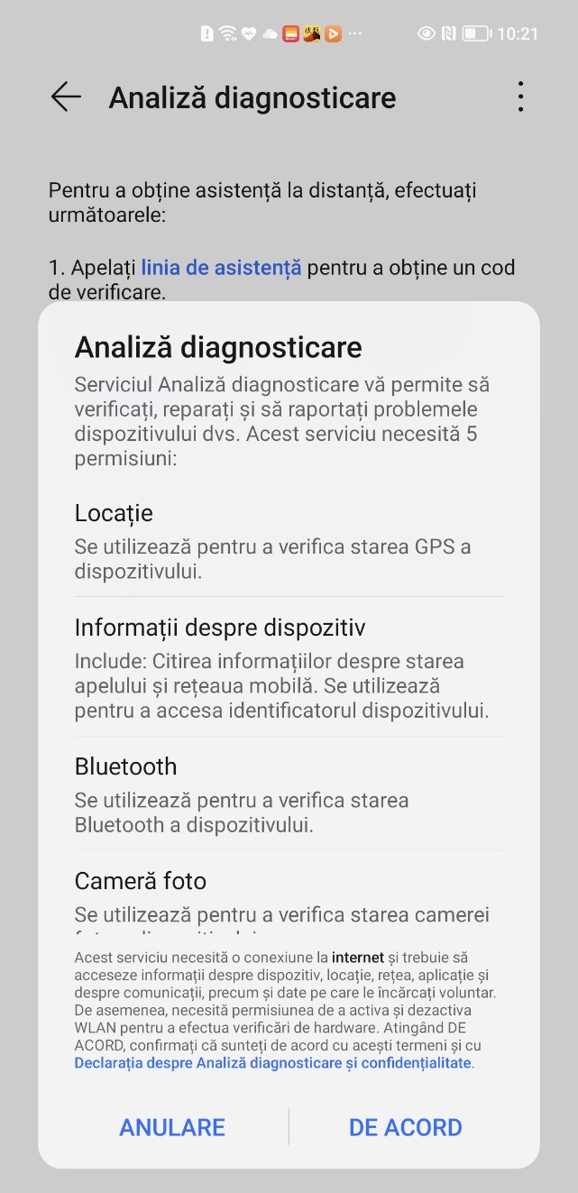 - 1.Diagnosticarea de la distanță este compatibila cu produsele HONOR nou lansate de tip telefon mobil/tabletă din 2021, iar produsele lansate mai devreme nu sunt compatibile cu acest serviciu, în prezent.