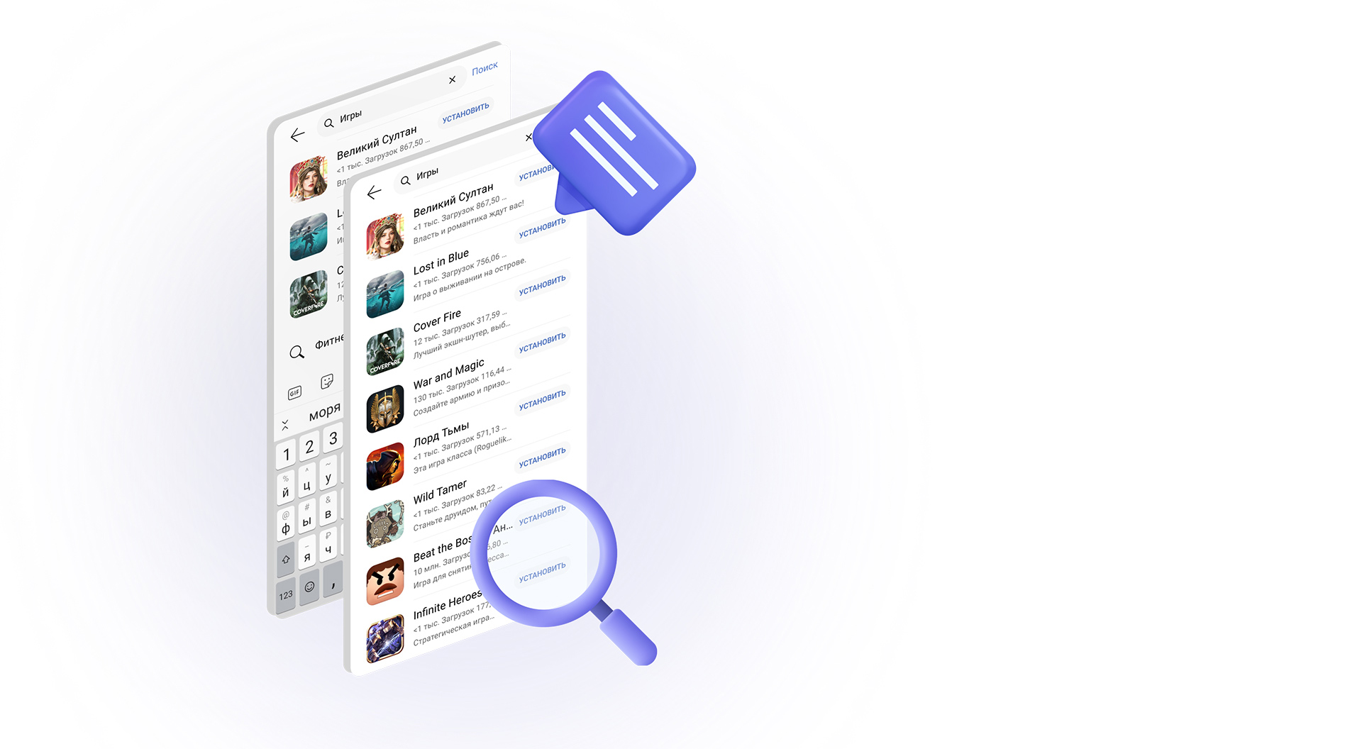 Быстрый поиск приложений и подборки,