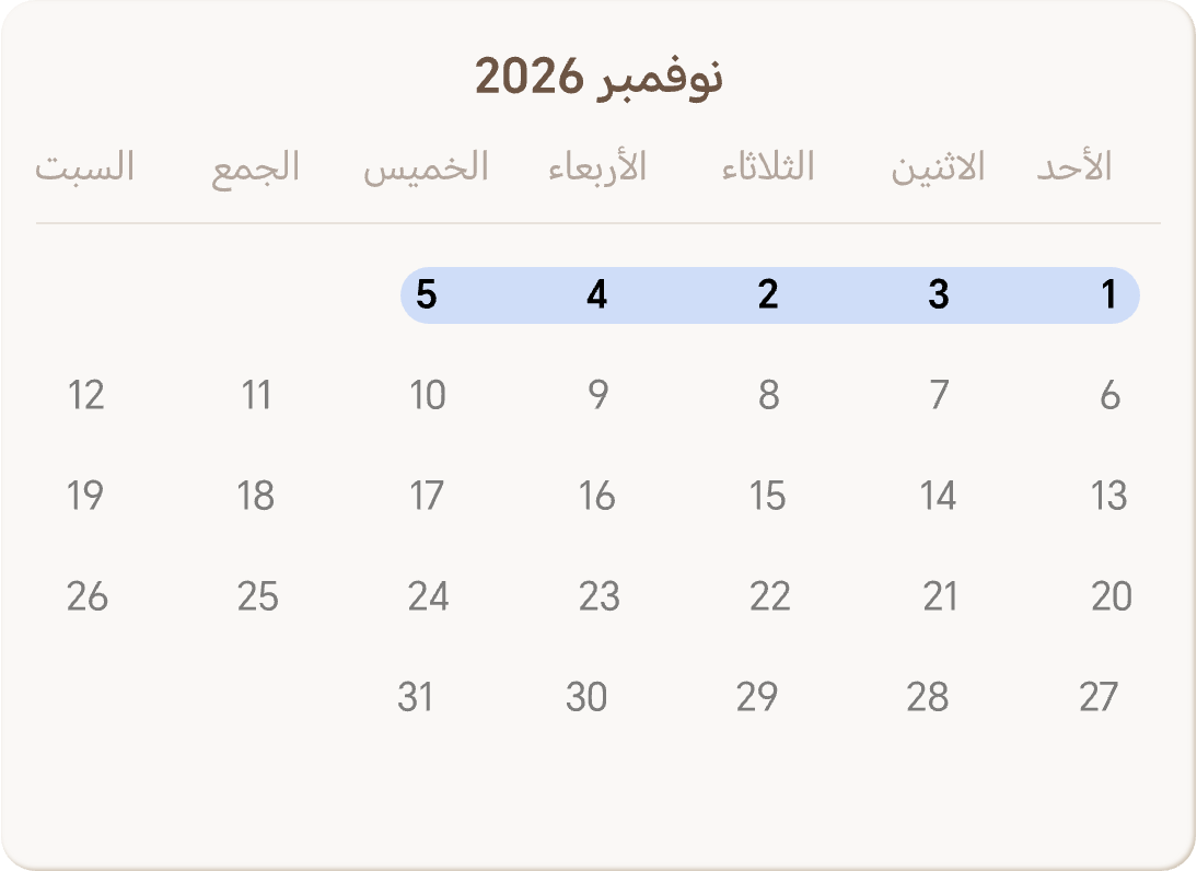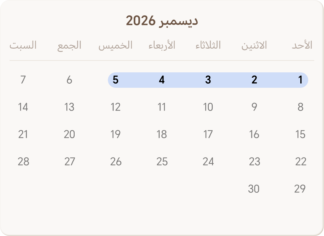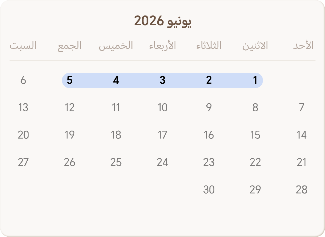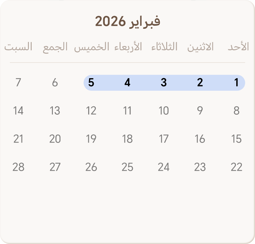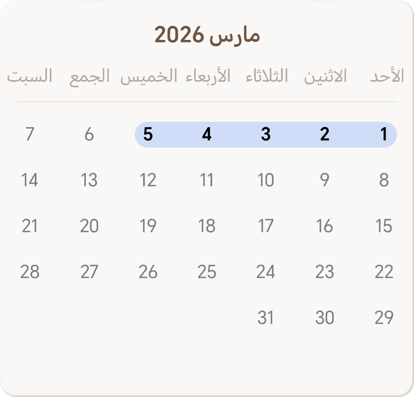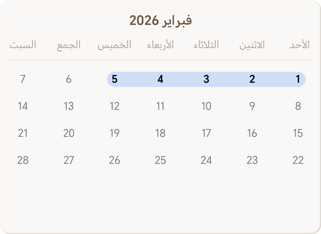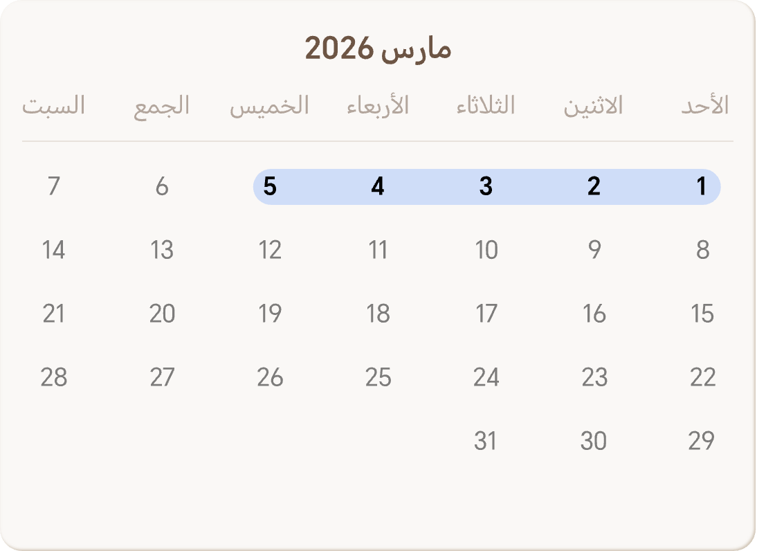 من اليوم 1 حتى اليوم 5 من كل شهر