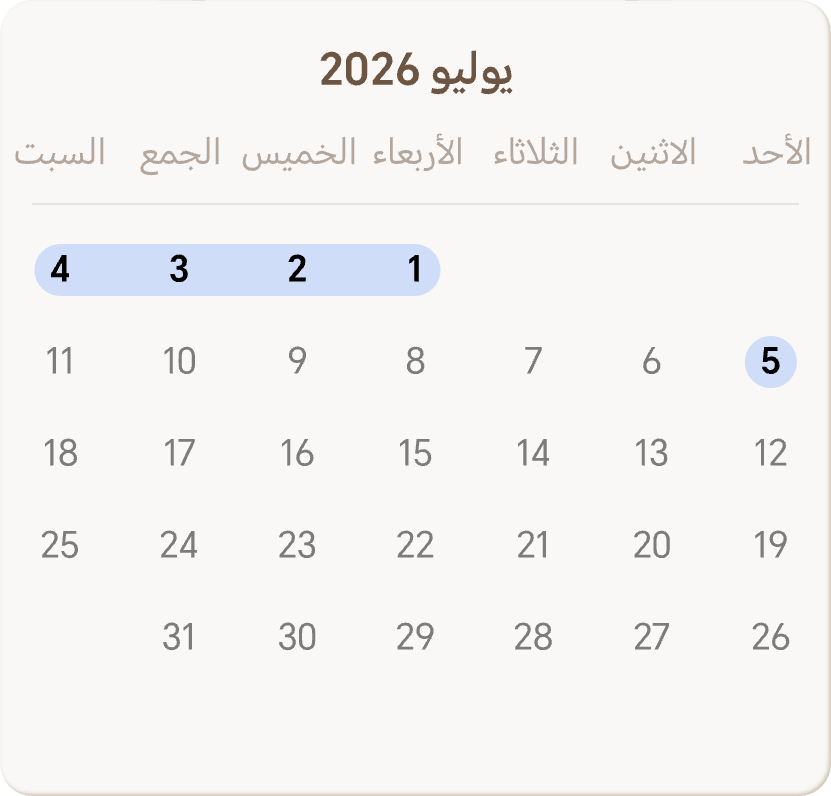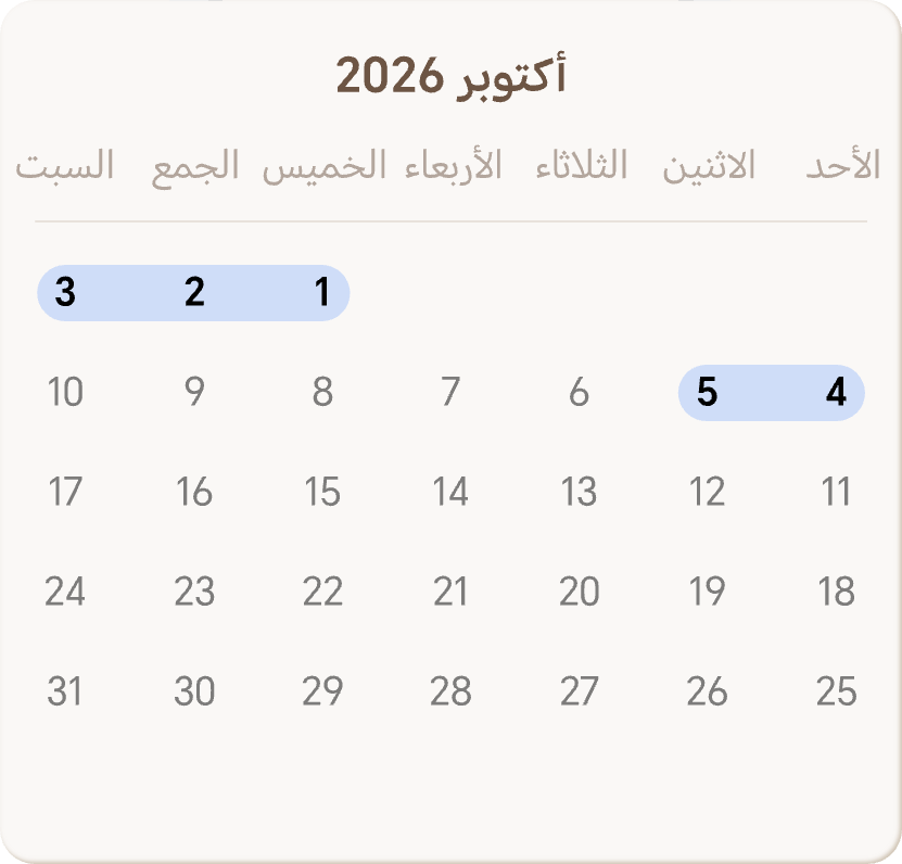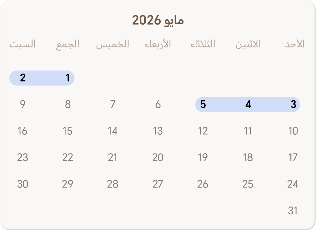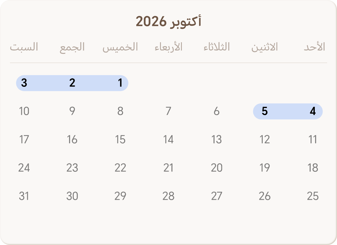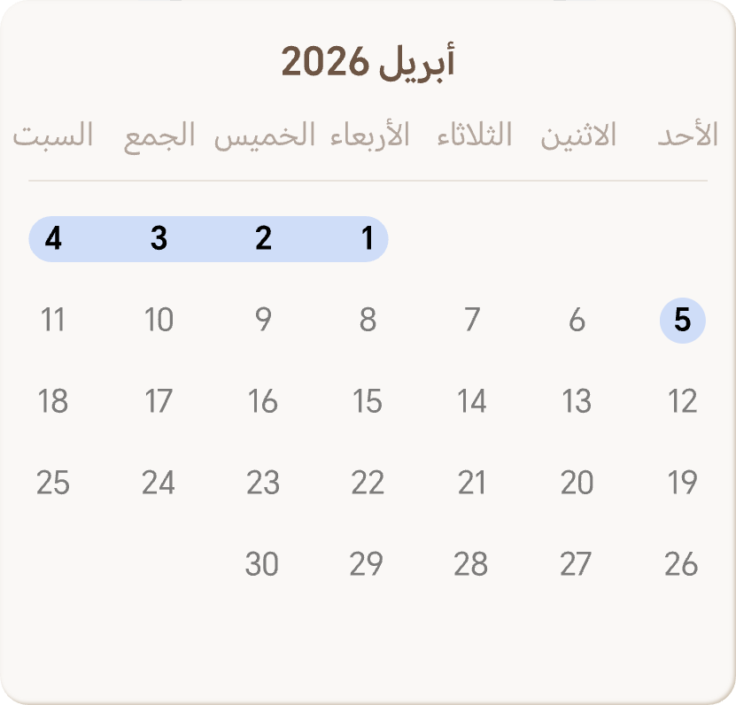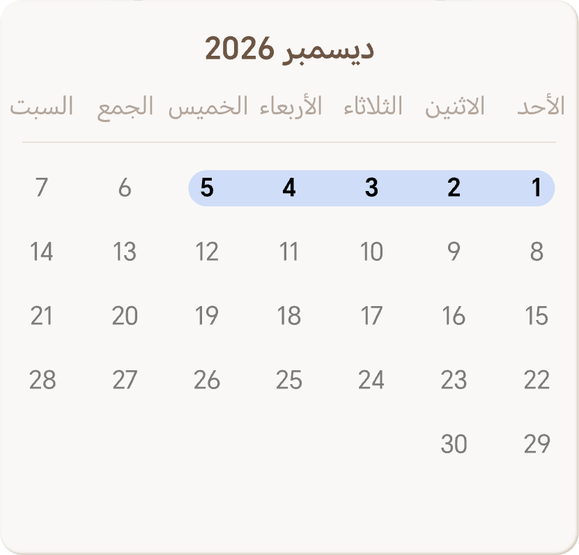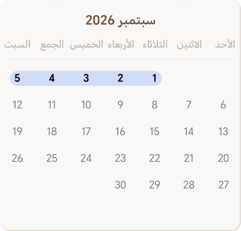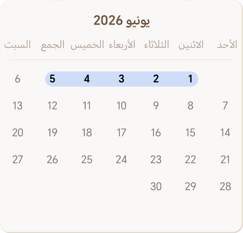 من اليوم 1 حتى اليوم 5 من كل شهر