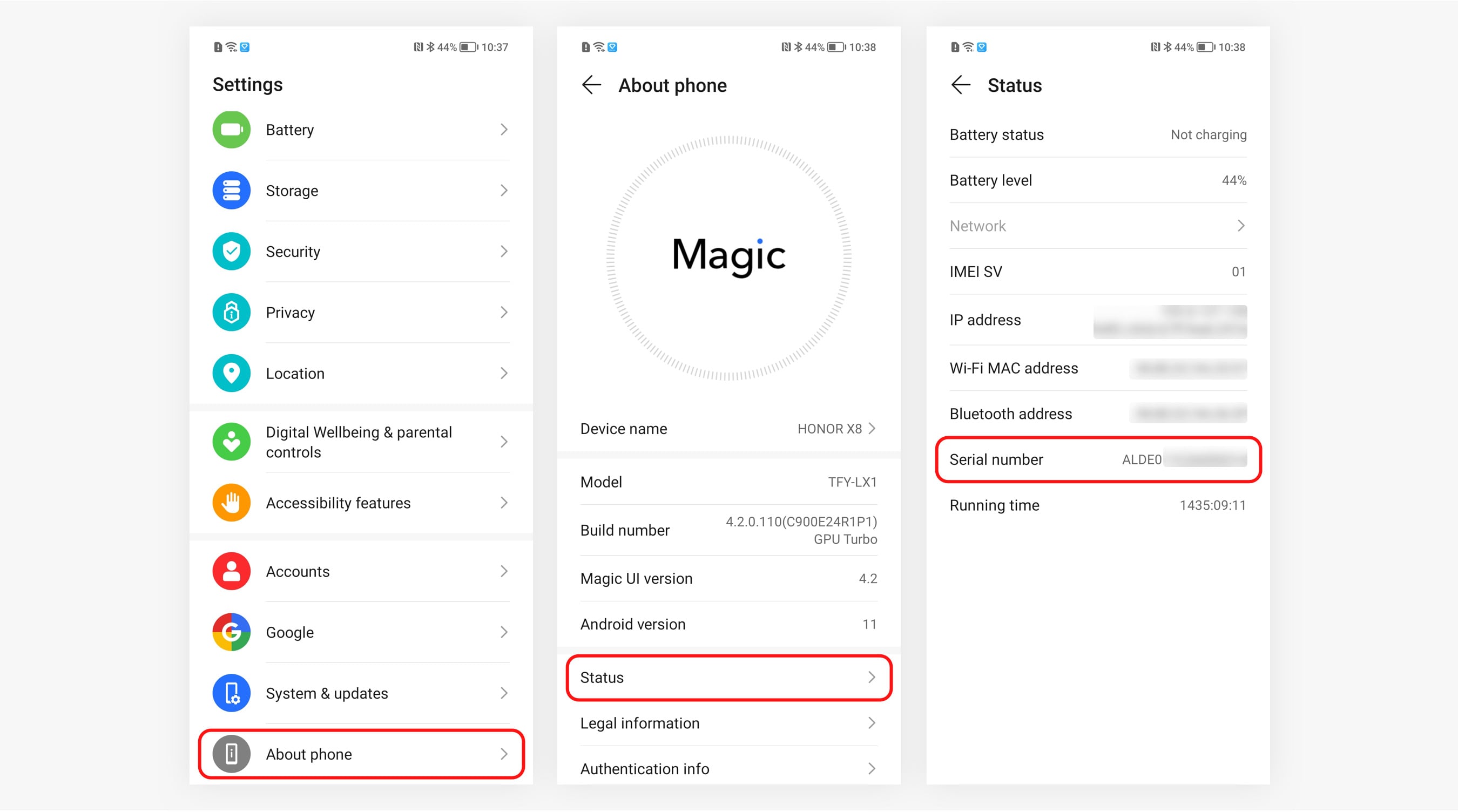 If you have a HONOR phone or tablet, you can also check the SN code through the mobile phone Setting card.