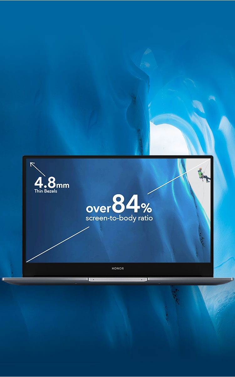 3. Data from HONOR internal laboratories. Actual measurements may vary according to the calculation method used. Please refer to the actual product. 4.8mm refers to up, right and left bezels.
