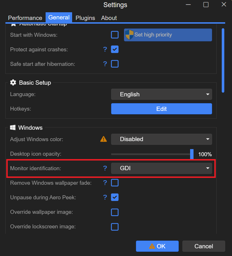 In Wallpaper Engine, go to Settings > General > Windows, and set Monitor identification to GDI, as shown below: