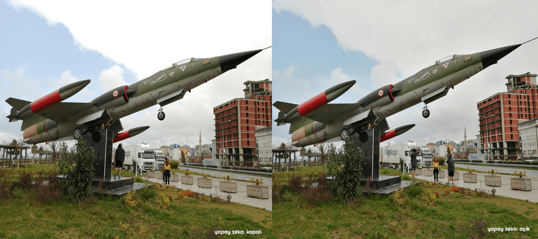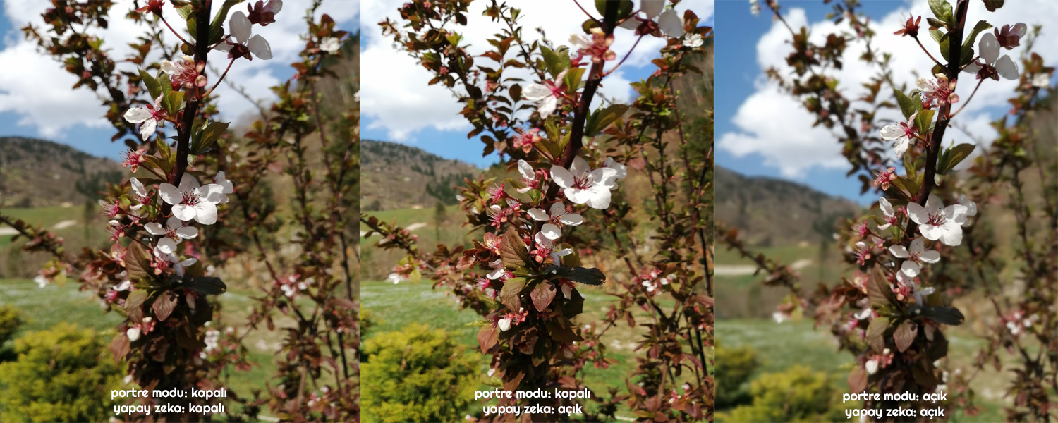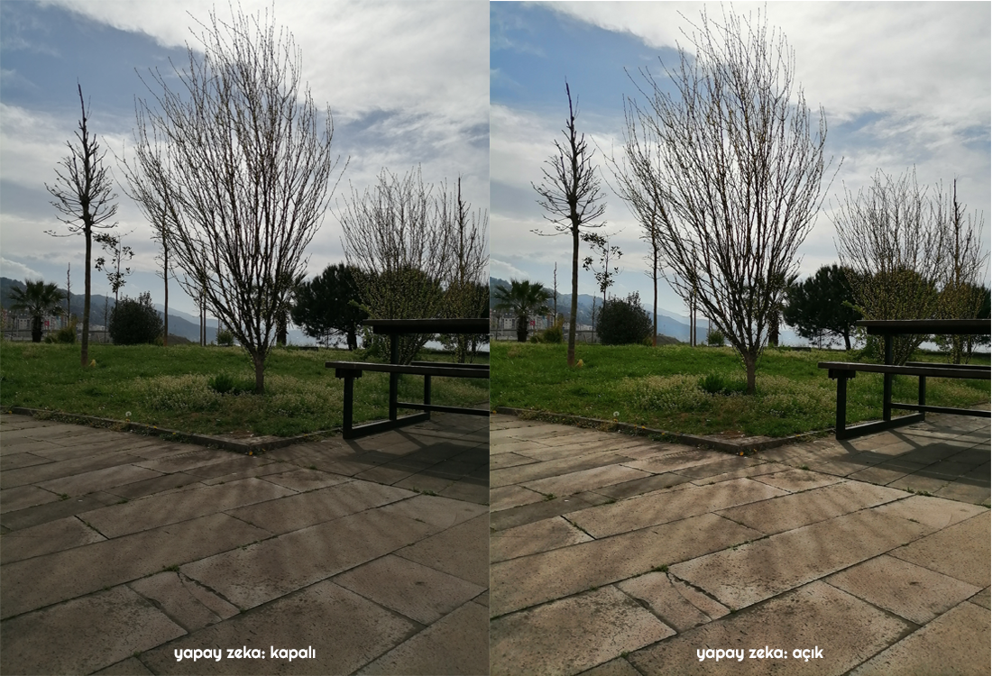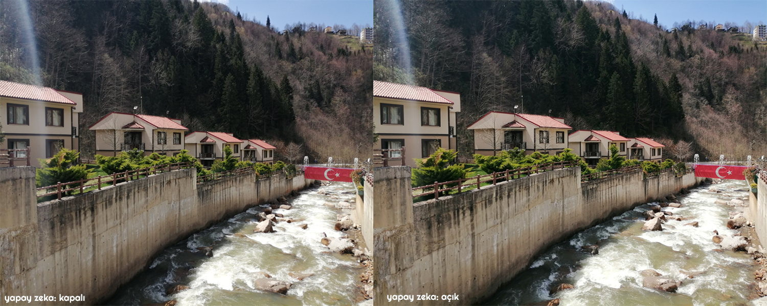 Yapay zekâ destekli birçok çekimde, renk tonlarının biraz daha ısıtıldığını ve doygunluğun arttırıldığını görüyoruz. Bu doygunluk artışı, sensöre düşen görüntüye en uygun şekilde ayarlanmakta. Örneğin bir ağacın fotoğrafını çekecekseniz, yapay zekâ renk tonlamasını doğa stiline uygun şekilde uyarlıyor. Bu noktada yapay zekanın nesne ayırt etme performansının da üst düzey olduğunu söylemeliyim.
